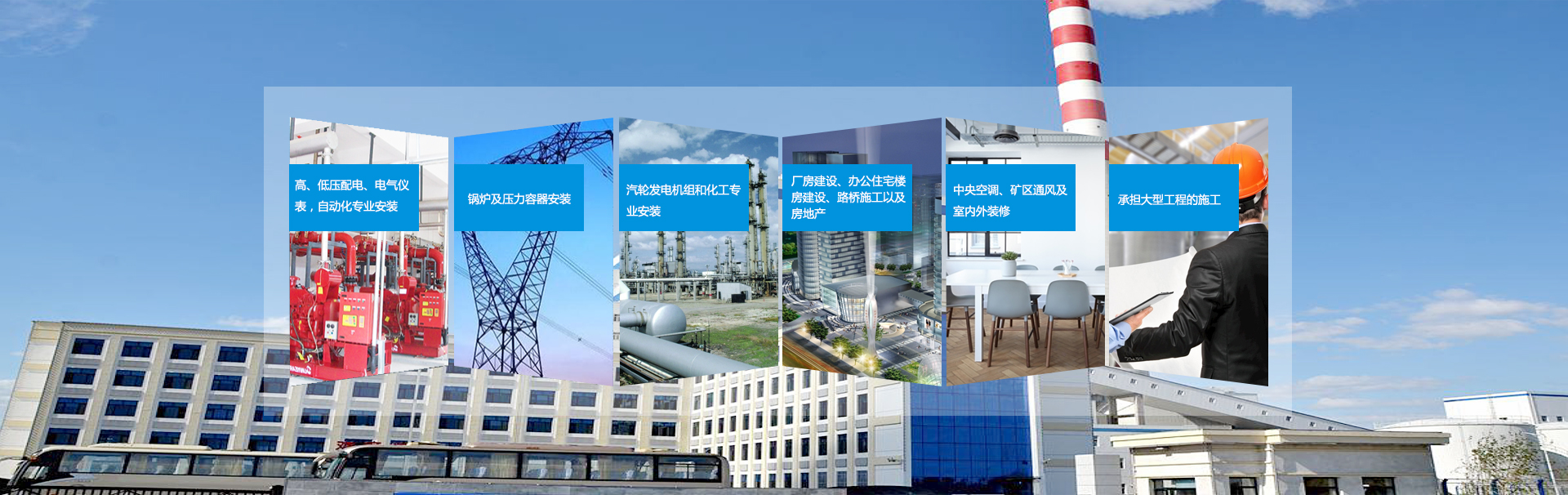 公司以工業(yè)、電力、化工安裝為主 下設(shè)六個大項(xiàng)目部及兩個獨(dú)立子公司