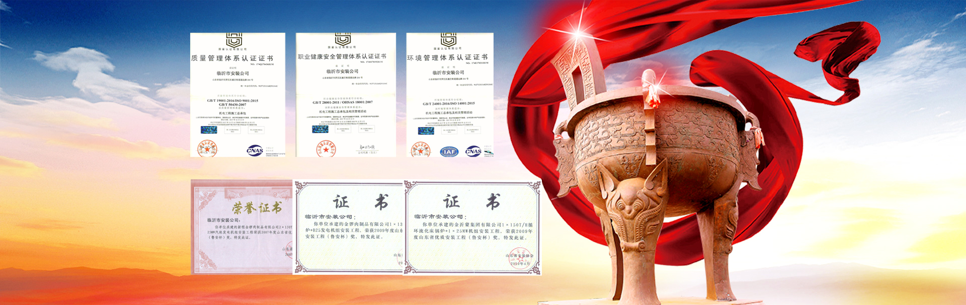 山東臨安建設(shè)有限公司(原名臨沂市安裝公司)始建于一九六六年,是由老國企改制的股份制企業(yè),公司總部位于羅莊區(qū)通達(dá)路211號,現(xiàn)有職工1000余名,各類工程經(jīng)濟(jì)技術(shù)人員816名,其中高中級職稱64名,初級職稱204人。主要從事機(jī)電工程施工總承包,電力施工總承包,石油化工施工總承包,建筑裝飾裝修施工總承包,鍋爐安裝、改造I級(參數(shù)不限),GB1、GB2(2)級、GC1級、GD1級壓力管道安裝,起重機(jī)械B級安裝,電力設(shè)施承裝、承試,并取得了GB/T19001-2008質(zhì)量管理體系認(rèn)證證書、GB/T28001-2011職業(yè)健康安全管理體系認(rèn)證證書、GB/T24001-2004環(huán)境管理體系認(rèn)證證書,資信等級“AAA”級。